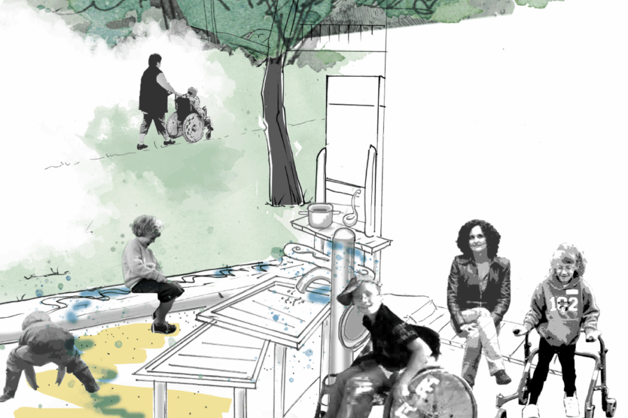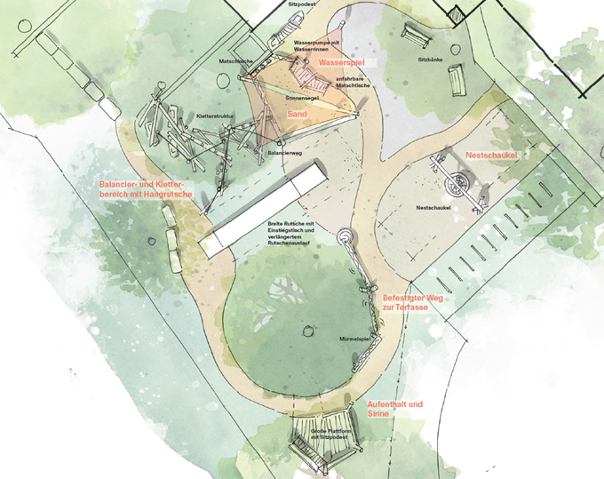 Selbstverständlich bauen wir den neuen Spielraum barrierefrei. Dafür brauchen wir eine extrabreite Rutschbahn, eine Nest-Schaukel für Kinder und Erwachsene, anfahrbare Wasser- und Matschtische, einen rollstuhlgängigen Rundweg und weitere, auf unsere Bedürfnisse abgestimmte Spielgeräte.